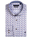 117026-30 Giordano Regular Fit heren overhemd wit met roze-donkerblauw-lichtblauw vissen print donkerbruine knopen 1knoops button down met borstzak 100 procent katoen