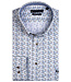 117026-70 Giordano Regular Fit heren overhemd wit met donkerblauw-lichtblauw-beige-groen vissen print donkerbruine knopen 1knoops button down met borstzak 100 procent katoen