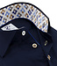 120.WSP.XLS.020 R2 Amsterdam heren overhemd donkerblauw 1knoops wide spread extra lange mouw, mouwlengte 7 met bruine knopen en contrast aan de binnenkant van de boord en manchetten 100% katoen