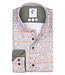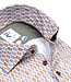 122.WSP.038 R2 Amsterdam heren overhemd speciale grafische print wit oranje blauw 1knoops wide spread 100 procent katoen met donkerbruine knopen
