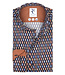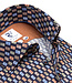 122.WSP.039 R2 Amsterdam heren overhemd speciale grafische print donkerblauw oranje blauw 1knoops wide spread 100 procent katoen met donkerblauwe knopen