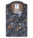 123.WSP.021/010 R2 Amsterdam heren overhemd donkerblauw bruin paisley en motoren print 1knoops wide spread 97 procent katoen 3% elastan met bruine knopen