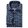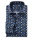 1302 44 28 Olymp modern fit strijkvrij heren overhemd donkerblauw lichtblauw beige grafische print met donkerblauwe knopen zonder borstzak 1knoops global kent 100 procent katoen green choice