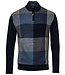 208450-535 Baileys heren donkerblauw-blauw-grijs ruit met donkerblauwe mouwen zipper met ritsje 100 procent lamswool 12gg jacquard knit + jersey knit