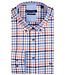 317305-31 Giordano Regular Fit heren overhemd donkerblauw blauw wit taupe koraal oranje ruitje 1knoops button down met donkerblauwe knopen met borstzak 100 procent katoen multi color small check Ivy, long sleeve button down soft coral blue taupe
