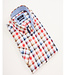 816315-30 Giordano Regular Fit heren overhemd korte mouw speciaal ruitje werkje beige-bruin-rood-donkerblauw-lichtblauw 1knoops button down met borstzak 100 procent katoen