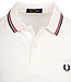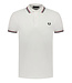 M3600 T60 polo pique Fred Perry Twin Tipped polo wit snow white met donkerblauw Fred Perry logo en 2 donkerblauw bordeaux rood strepen bij de boord en mouwen 100 procent katoen snow white bred navy