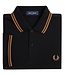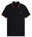 M3600 kleur V30 polo pique Fred Perry Twin Tipped polo zwart met camel bruin Fred Perry logo en bruin + brique strepen bij de boord en mouwen BLACK/NUT FLAKE/DKCAR 100 procent katoen