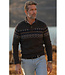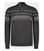 25KN487-1198 New Zealand Auckland heren zipper hazel melange donkerbruin met blauw bruin winter motief en knopen NZA 40% wol, 40% acryl, 20% polyamide.